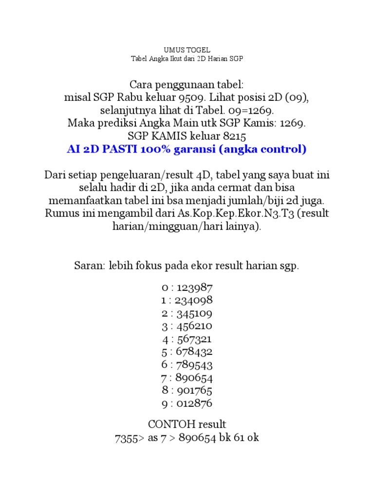 Rumus Togel Angka Ikut Dari 2d Harian Sgp Harian Togel Indonesia