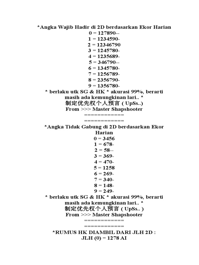 295041371 Angka Wajib Hadir Di 2d Berdasarkan Ekor Harian