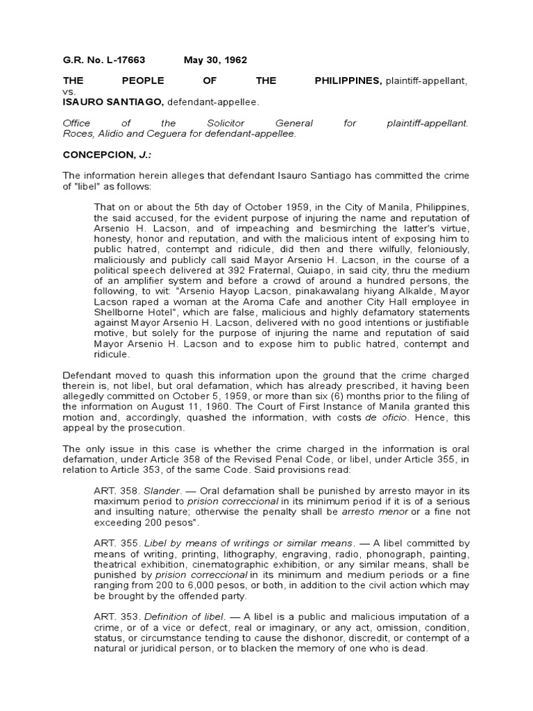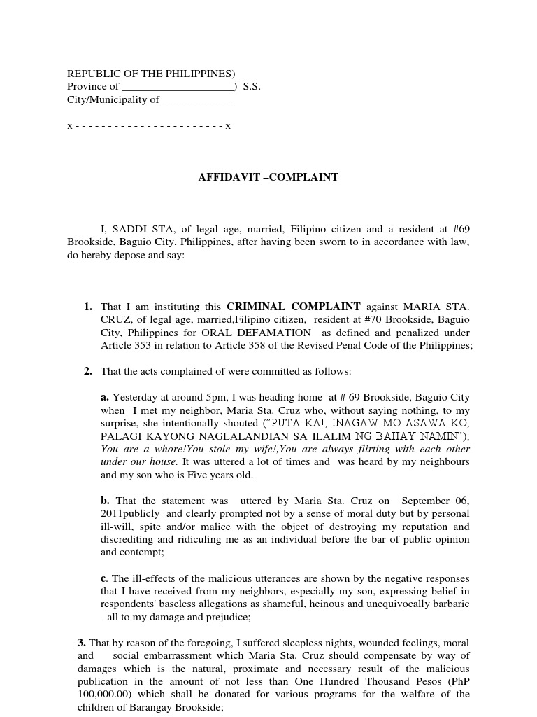Complaint Affidavit For Oral Defamation Defamation Politics
