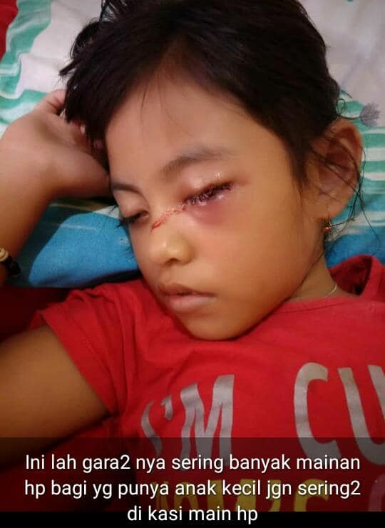 Akibat Kecanduan Main Ponsel Mata Bocah Ini Lebam Dan Merah
