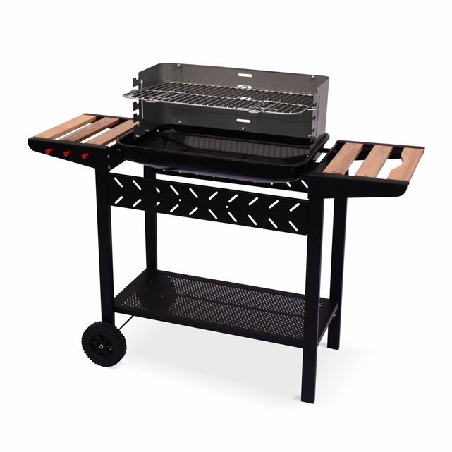 Barbecue Charbon Alfred Cuve Emaillee Tablettes Laterales Bois