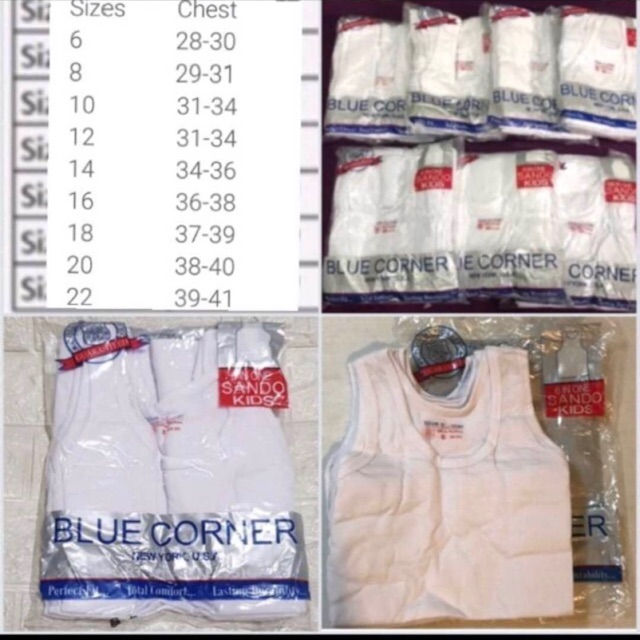 Blue Corner Original Cotton Sando For Kids 6pcs Per Pack Shopee