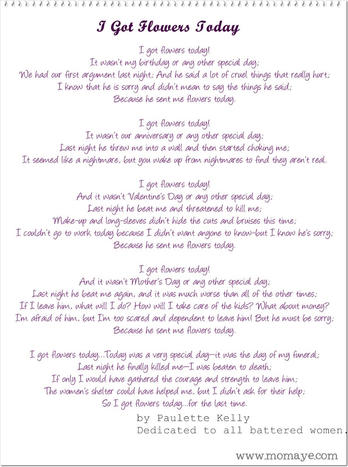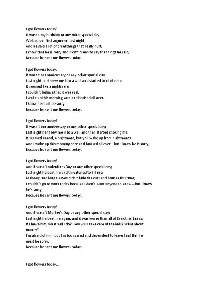 By paulette kelly i got flowers today. I got flowers today short film duration. And i woke up this morning. And he said a lot of cruel things that really hurt me. I got flowers today by paulette kelly i got flowers today.